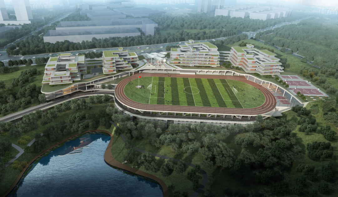 金开中学紧邻茶坪水库,四周两江新区山地运动公园、棕榈泉生态公园、颐和生态公园等环绕,依山傍水、风景如画,预计2024年上半年竣工。